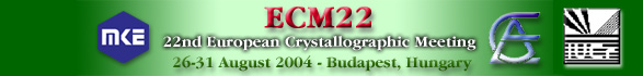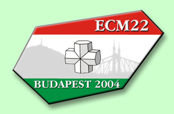 The outline of the Logo of ECM22 shows the schematic contour of Hungary. The logo is hallmarked by the twin crystal of staurolite. Its structure* was determined in 1929 by István Náray-Szabó founder of X-ray crystallography in Hungary. As the symbols of Budapest, in the background there are the Liberty Bridge crossing the river Danube and St. Gellert Hill with the Liberty statue on the top. This is the panorama of the city which can be seen from the venue of the conference.